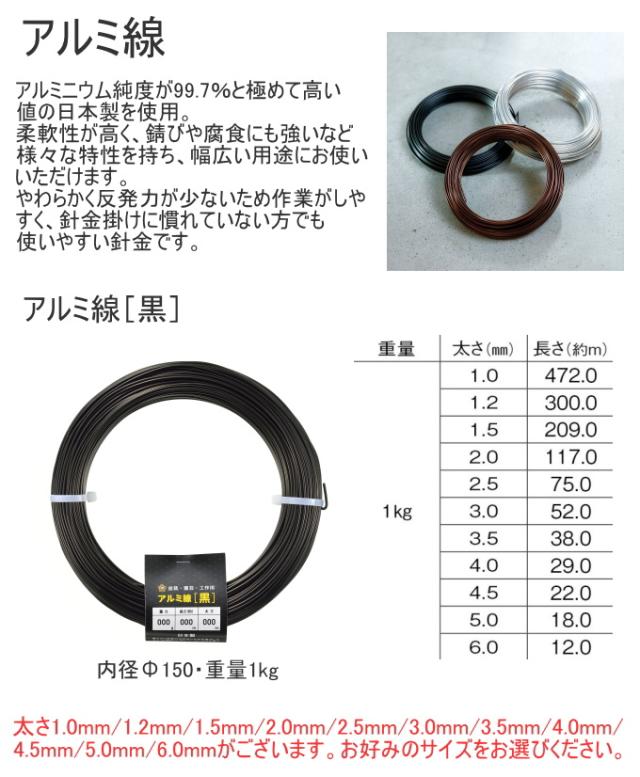 アルミ線 黒 1kg 1個 日本製 ワイヤー 針金 アルミ 黒色 ブラック ワイヤークラフト DIY 手芸 石崎剣山製作所