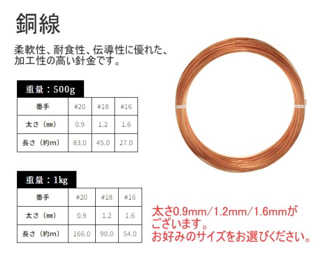 銅線 500g 1個 日本製 ワイヤー 針金 銅 銅線 銅線ワイヤー ♯20 ♯18 ♯16 DIY 手芸 石崎剣山製作所