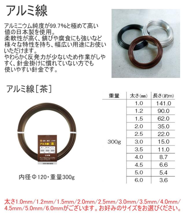アルミ線 茶 300g 1個 日本製 ワイヤー 針金 アルミ 茶色 ブラウン 手芸 石崎剣山製作所