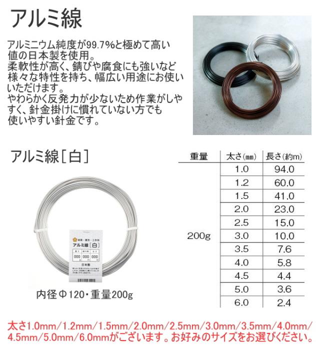 アルミ線 白 200g 1個 日本製 ワイヤー 針金 アルミ シルバー 銀色 手芸 石崎剣山製作所 ネコポス対応