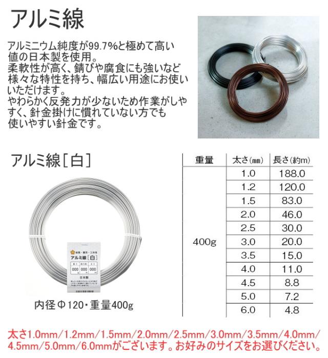 アルミ線 白 400g 1個 日本製 ワイヤー 針金 アルミ シルバー 銀色 ワイヤークラフト DIY 手芸 石崎剣山製作所