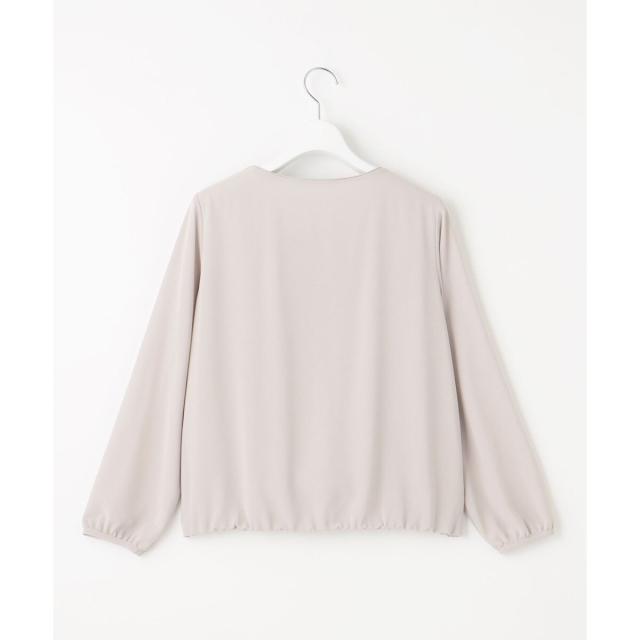 通勤や華やかシーンに活躍する上品なシフォンブラウス■デザイン上品なドレープがエレガントなムードを演出する柔らかい印象のシフォンブラウスです。シアーな素材ですが、身頃には透け防止の裏地が付いているので1枚でも安心して着て頂けます。袖はシアー感を残したエレガントさのあるデザインで、裾はボリュームを抑えたバルーン型でゴム仕様のため着心地の良さも魅力です。首元の中心にスリット開きがあり、ホックで着脱がスムーズになります。通勤やセレモニーシーンにはもちろん、デニムに合わせたキレイめカジュアルスタイルもおすすめです。■素材繊細で軽やかな手触りと微細な表面感がある上品なシフォン素材です。程よいシアー感があります。