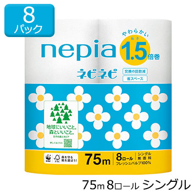 ネピア ネピネピ トイレットペーパー 1.5倍巻 シングル 82.5m 無香料 8ロール×8パック 送料無料 00553