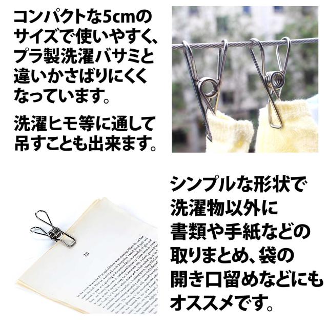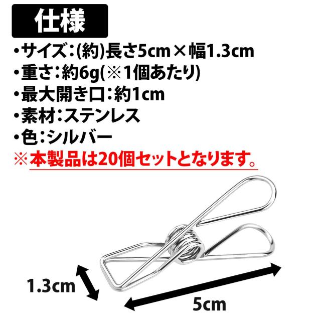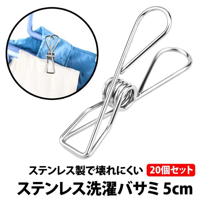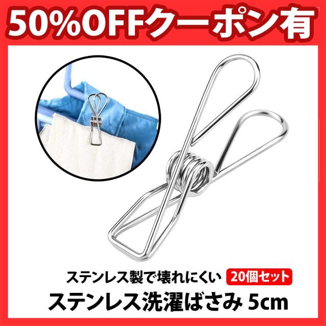 50%offクーポン有 ステンレス製 洗濯バサミ 20個 セット 5cm 強力 ピンチ クリップ おしゃれ 収納 洗濯 物干し ハンガー 丈夫 しっかり インテリア 洗濯ばさみ 洗濯ピンチ 錆びにくい メモクリップ 書類 ステンレス 固定 衣類 洗濯物 ピンチ力 ホールド力 高耐久 タオル
