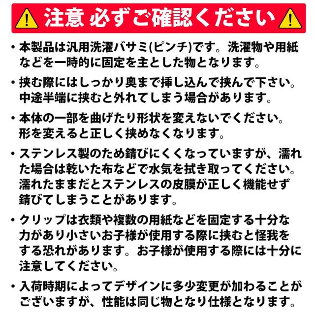 ・本製品は汎用洗濯バサミ(ピンチ)です。洗濯物や用紙などを一時的に固定を主とした物となります。
