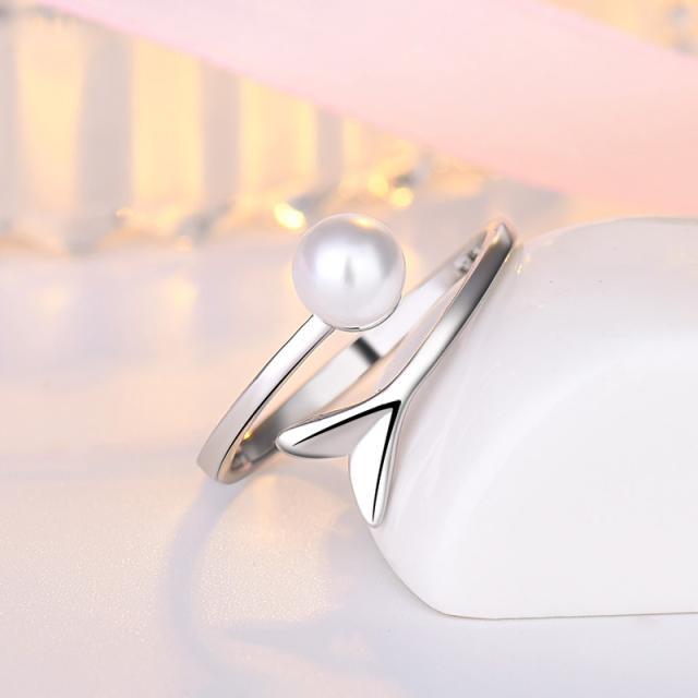 イルカリング 1粒パール指輪 レディースリング 指輪 スライド調整 パールリング ジュエリー 指輪レディース 結婚式 真珠指輪 プレゼント 真珠 リング ゆびわ イルカ