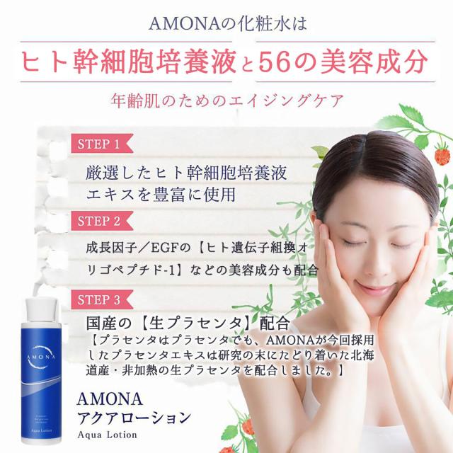 「ほうれい線が気になる‥」「くすみ、たるみ、乾燥肌をなんとかしたい‥」そんなあなたのために、研究開発を重ねて作り上げたエイジンクケアのためのAMONAのヒト幹細胞化粧水です。