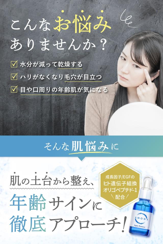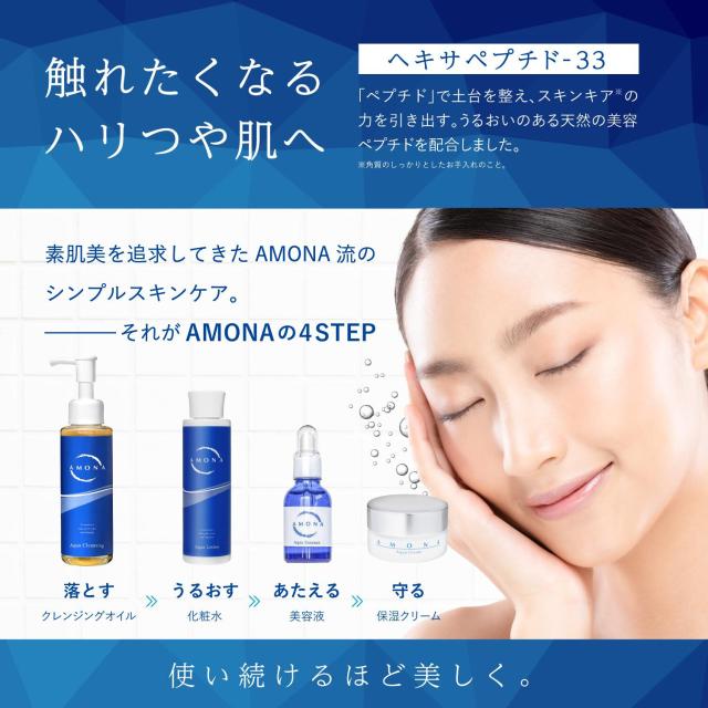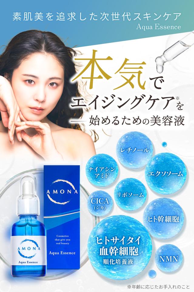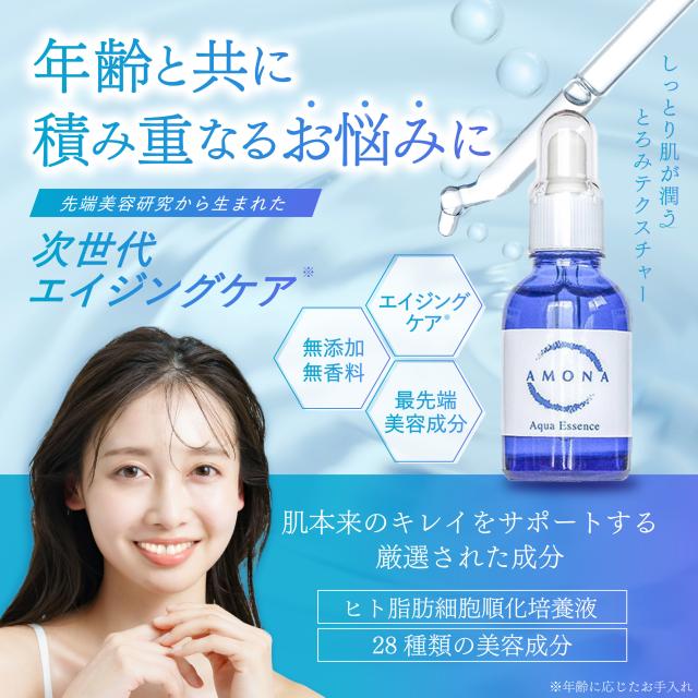 「ほうれい線が気になる‥」「くすみ、肌のハリ、乾燥肌をなんとかしたい‥」そんなあなたのために、研究開発を重ねて作り上げたエイジンクケアのためのAMONAのヒト幹細胞美容液です。