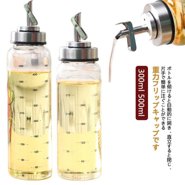 液だれしない 漏れ防止 オイルボトル 漏れ止め ガラス おしゃれ 家庭キッチン キッチングッズ 醤油ボトル 油ボトル 酢ボトル 耐熱ガラス 自動開閉 オイル差し オイルボトル 防塵 300ml 500ml 調味料入れ 料理 瓶 液体入れ 容器