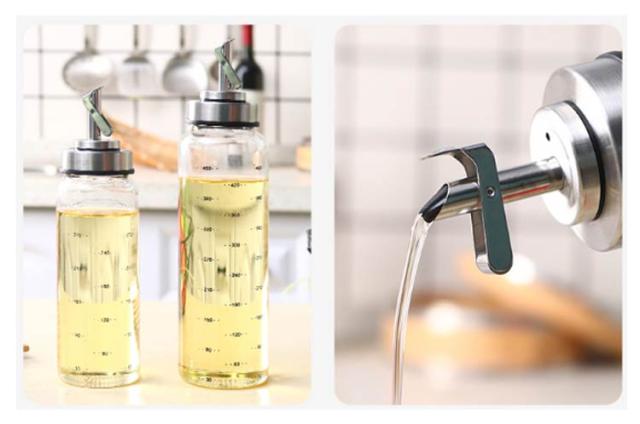 | ボトルを傾けると自動的に開き、直立すると閉じ、片手で簡単に注ぐことができる重力フリップキャップです ボトルはガラス材料、カラス瓶は厚くて丈夫で、耐熱性を備えて、うっかり火のそばに置いても安心です 油を注ぎ終わった後、漏れた液が注ぎ口の後ろの穴へ入り、本体へ戻る構造になっているので漏れることや液だれもしません オイル差しのガラスには目盛りが付いており、油の使用量を適切に管理でき、注ぎすぎの心配がなく、とても便利でわかりやすいです | |