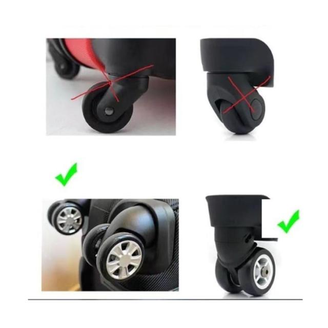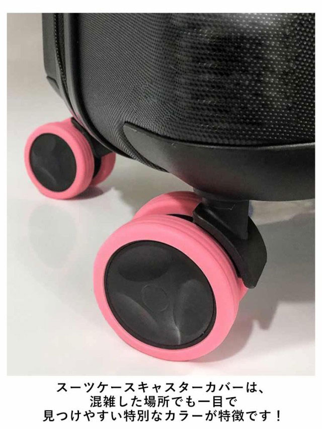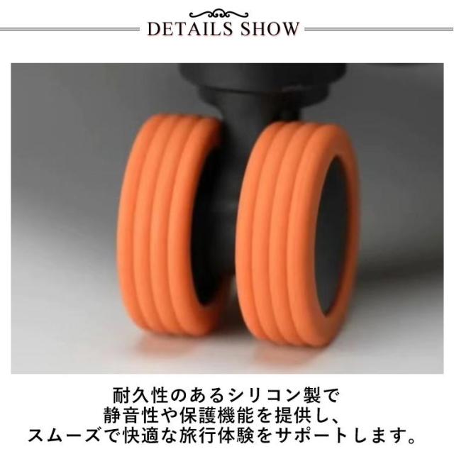 | スーツケースの汚れを室内に持ち込まないキャスターカバー。 スーツケースキャスターカバーは、混雑した場所でも一目で見つけやすい特別なカラーが特徴です! キャスターによる床への汚れ・傷も防ぐだけてなく、ゴムの磨耗を防いで車輪も長持ち! 耐久性のあるシリコン製で静音性や保護機能を提供し、スムーズで快適な旅行体験をサポートします。 ジャストフィットで包み込む、効果的な静音効果を発揮、衝撃吸収で車輪の寿命を延ばします。キャスターとフォークの隙間が3mm以上は装着できる場合があります。 | |