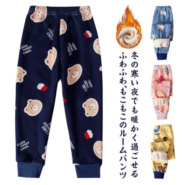 ルームパンツ キッズ ズボン パジャマ 寝巻き 子供 女の子 男の子 インナー パンツ 柔らかい 冬 もこもこ 厚手 ボア 長ズボン 無地 ふわふわ 暖かい 春 秋 冬 ルームウェア 部屋着 ナイトウェア ロングパンツ おしゃれ 可愛い 100 110 120 130 140 150 送料無料
