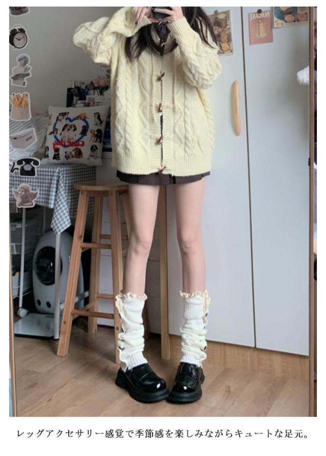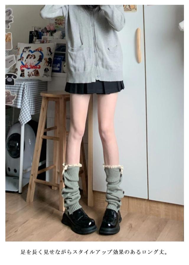 | 程よいボリューム感がでる長さのルーズソックスです。 裾にかけて広がり、美脚効果抜群のブーツカットのレッグカバー。 チクチクしない優しい肌触りが良い暖かいニット素材使用。 圧迫感なく優れた伸縮性、しっかり足元をふわっと優しく包み込む。 レッグアクセサリー感覚で季節感を楽しみながらキュートな足元。 足を長く見せながらスタイルアップ効果のあるロング丈。 ショート丈ボトムに抵抗がある方にもチャレンジしやすいです。 ふくらはぎを優しく守ってくれる、おうちのリラックス時間、おやすみタイムにも◎ 足を長く見せながらスタイルアップ効果のあるブーツカットのレッグウォーマー。 厚底パンプスやスニーカーに合わせてブーツ感覚で可愛いエッジの効いたトレンドスタイルに。 | |