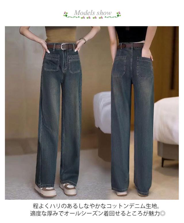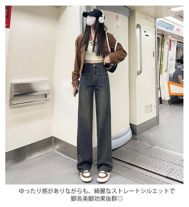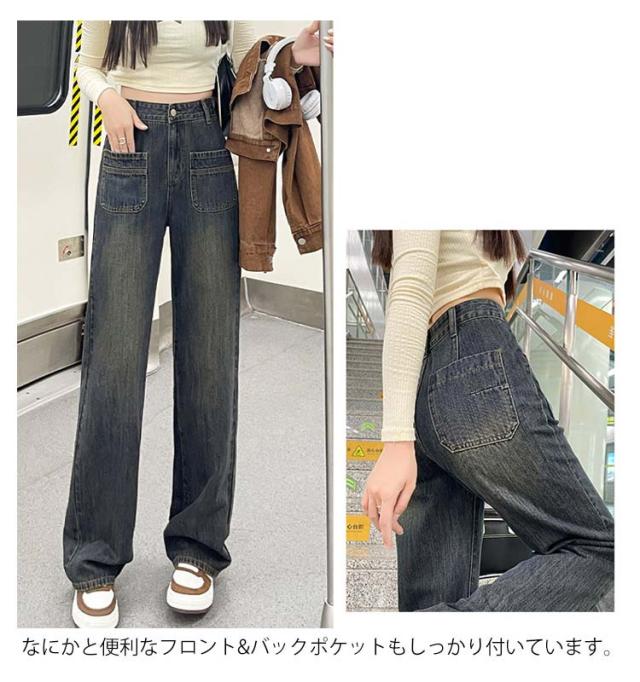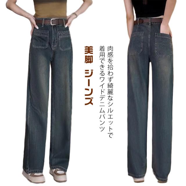 ワイドパンツ デニムパンツ レディース ストレート ハイウエス デニム ボトムス きれいめ 大きいサイズ ゆったり ロングパンツ 美脚 ジーンズ パンツ 体型カバー 韓国ファッション