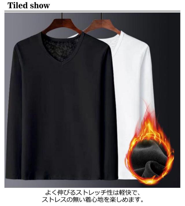 【送料無料】【2枚セット】VネックロングTシャツ メンズ インナー ブラック 黒 男性 インナー メンズインナーシャツ メンズシャツ 男性用シャツ 肌着 ヒートテック 保温 裏起毛 裏シャギー 裏ボア インナー Tシャツ 長袖 下着 暖かい 着る毛布 長袖tシャツ