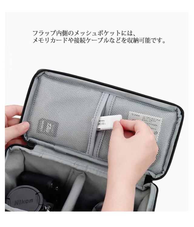 | ・ミラーレス一眼や小型一眼レフにぴったりな、コンパクトサイズのカメラショルダーバッグ。 ・コンパクトサイズなのでショルダーベルトを外せば、インナーバッグとしても使用することができます。 ・ショルダーベルトを使えば肩掛け使用も可能。 ・ショルダーベルトには、肩への負担を軽減するパッド付きです。 ・フラップ内側のメッシュポケットには、メモリカードや接続ケーブルなどを収納可能です。 | |
