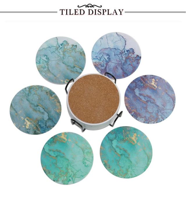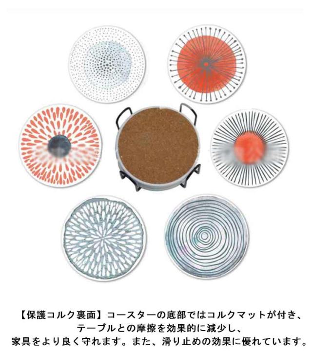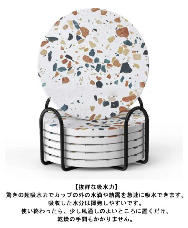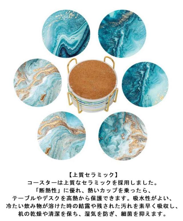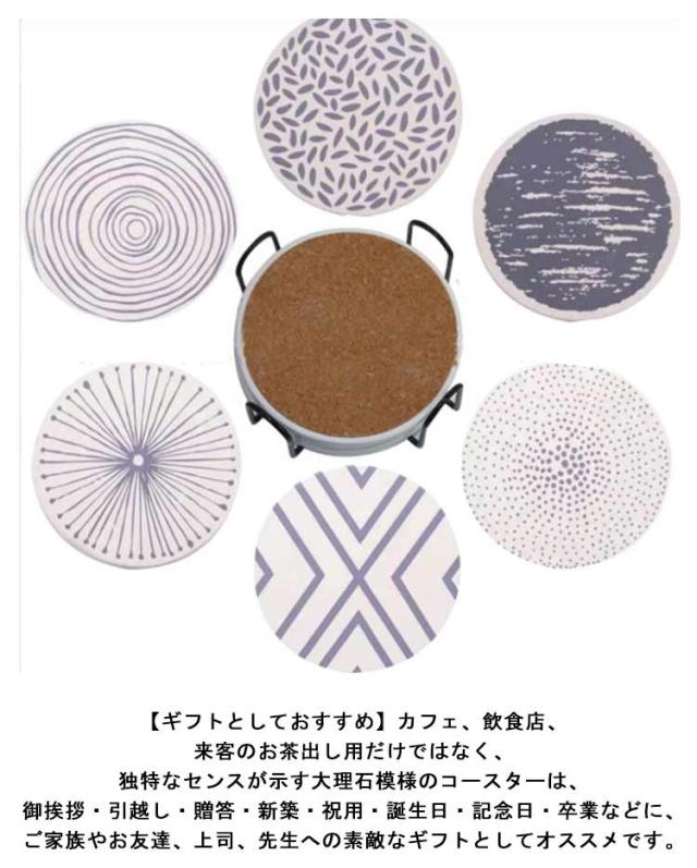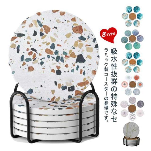 全8タイプ コースター 6枚セット セラミック製 吸水 速乾 断熱 大理石柄 カップマット 茶パッド 円型 裏面コルク ホルダー付き ギフト プチギフト おしゃれ 吸水コースター 陶器 カフェ ダイニング 結婚祝い 引っ越し 新居 北欧 プレゼント 送料無料