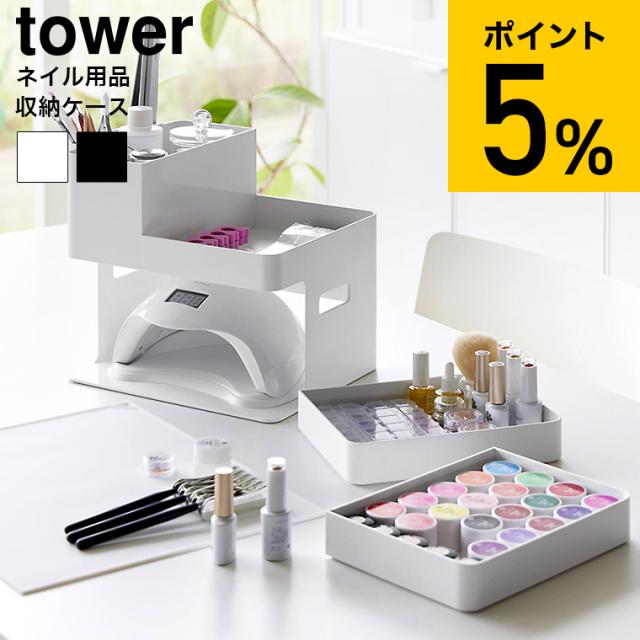 tower 山崎実業 ネイルライト&ジェルネイル用品収納ケース タワー 送料無料 2036 2037 ホワイト ブラック ネイルパーツ 収納 ネイルケアグッズ ネイルカラー マニュキュア 小物 トレー 持ち手付き タワーシリーズ