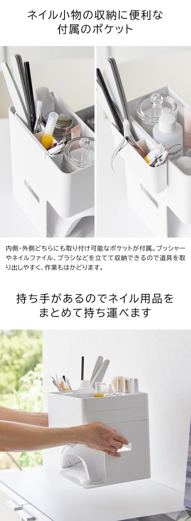 ジェルネイル用品とネイルライトを一緒に収納できる大容量の収納ケース。独立した2段トレーで、収納したネイル用品を広げて使えます。取り外しできる小物用収納ポケット付き yamazaki