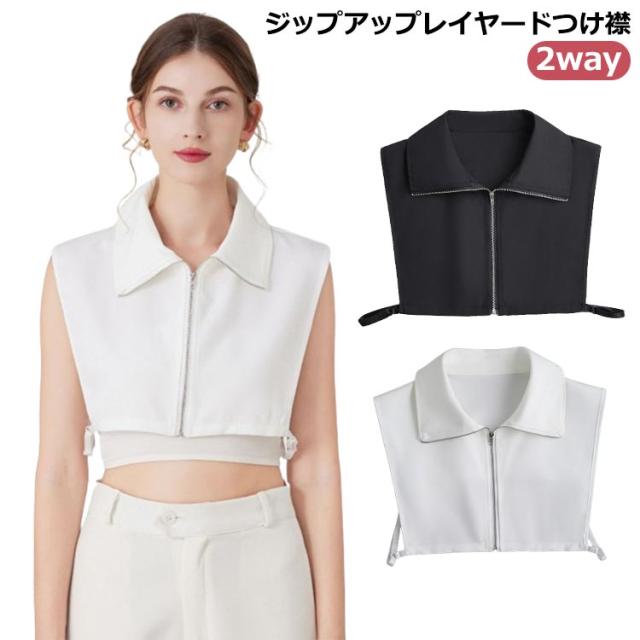 つけ襟 2way 付け襟 ジップアップ付け襟 レイヤード ブラウス シャツ ハーフジップ ハイネック 付け衿 つけ衿 レディース インナー 送料無料 レトロ おしゃれ 韓国 ネックカバー 白 黒 春夏 秋冬