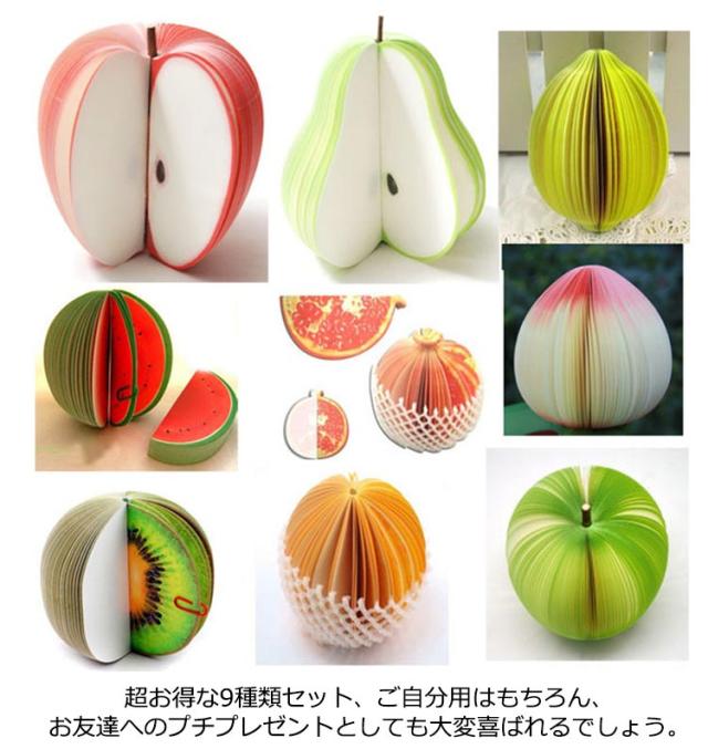 メモ帳 9種類セット フルーツメモ メモ帳 付箋 立体フルーツ型 クリップ付き ネット付 フルーツ便箋 3Dメモ おもしろ文具 面白グッズ 果物 便箋 送料無料 文房具 セット 退職 ギフト 贈り物 オフィス 卒業式 誕生日 プチギフト