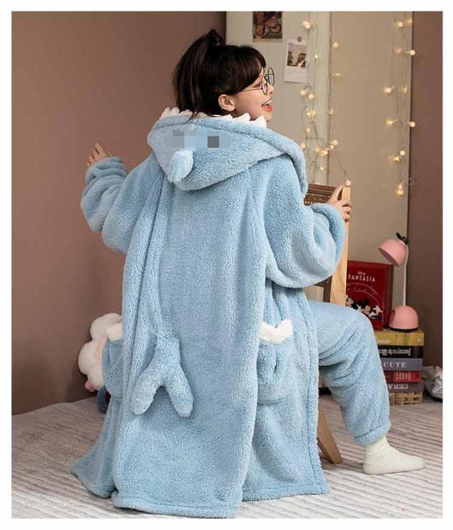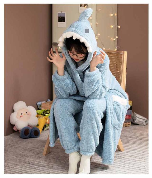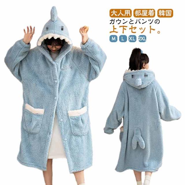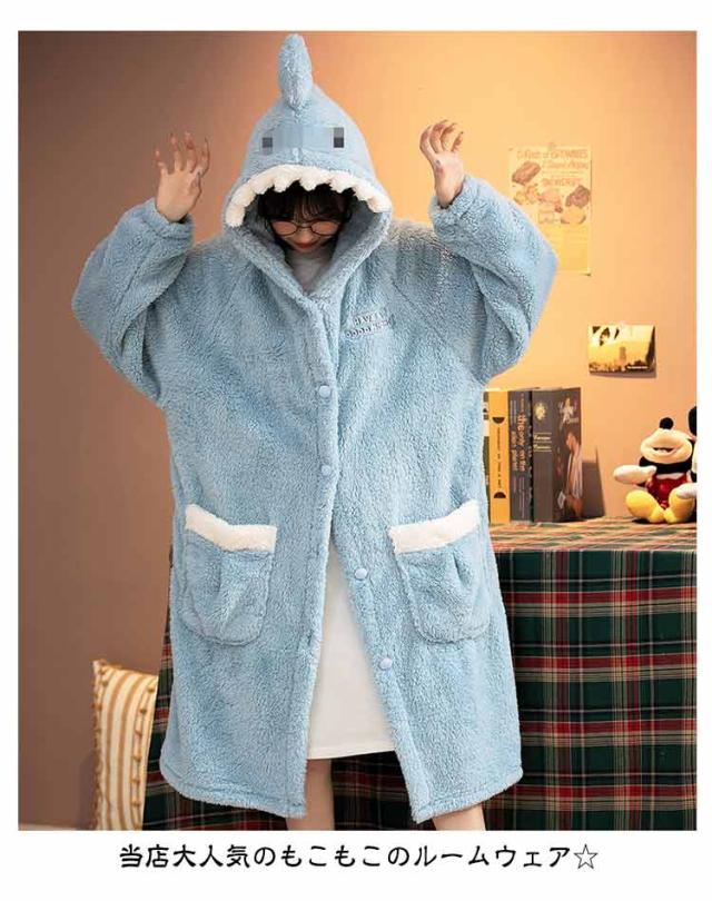 | ガウンとパンツの上下セット。 当店大人気のもこもこのルームウェア☆ フード&尻尾付きのサメデザインがインパクト抜群! かわいくて暖かいルームウェアでお家時間が楽しくなります♪ お友達やご家族、兄弟姉妹でのお揃いコーデや色違いコーデもおすすめです^^ | |