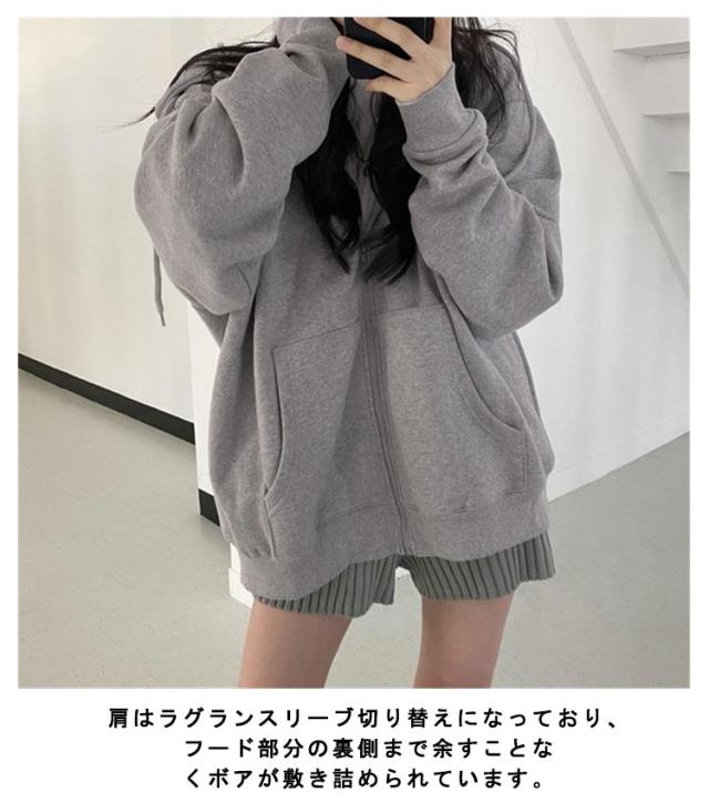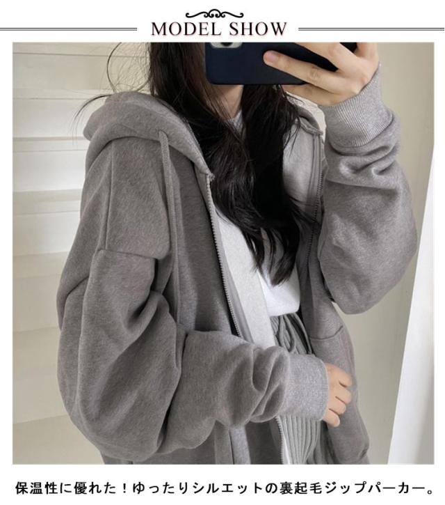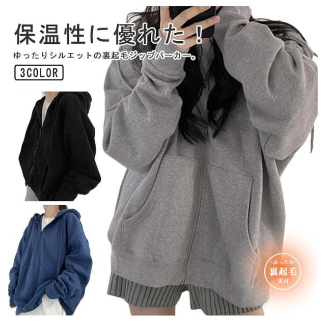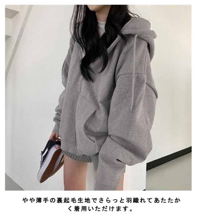 パーカー オーバーサイズ 裏起毛 フード トップス 長袖 韓国ファッション 秋 冬 大きいサイズ スウェットパーカー ジップアップパーカー 裏起毛パーカー あったか 裏起毛 秋冬 厚手 暖かい あたたかい 防寒 部屋着 ルームウェア ふわふわ かわいい
