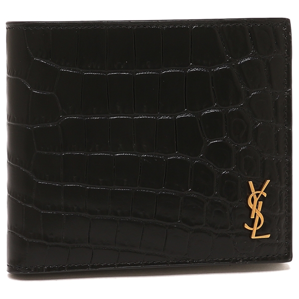 ●商品名:サンローランパリ 二つ折り財布 タイニーカサンドラ ブラック メンズ SAINT LAURENT PARIS 607727 DZEDW 1000 TINY CASSANDRE EAST WEST WALLET IN CROCODILE-EMBOSSED MATTE LEATHER BLACK YSLロゴ