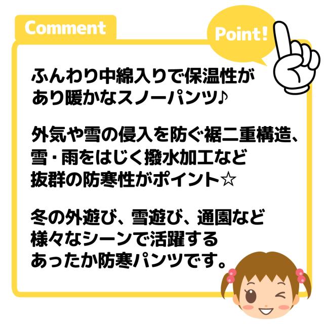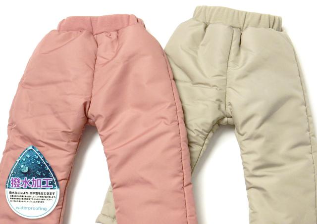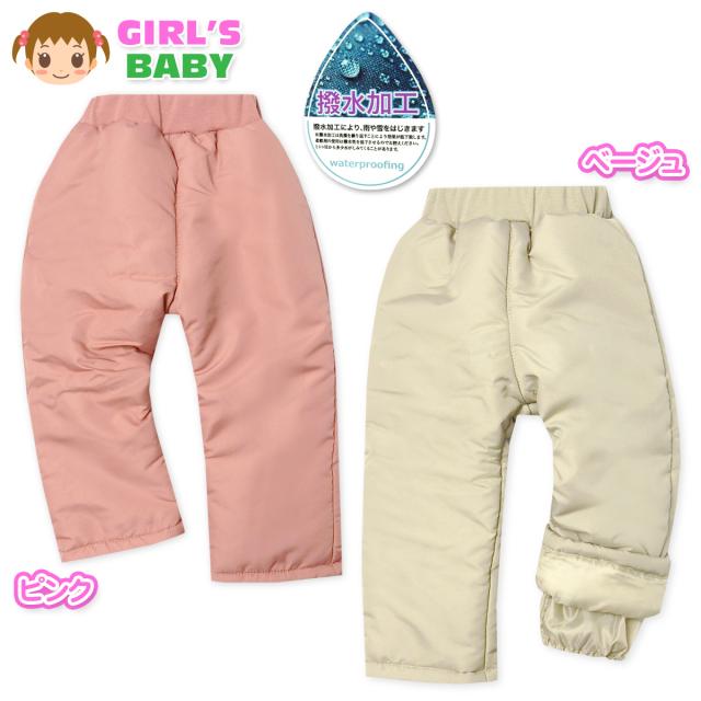 【送料無料】女児 ベビー 中綿 スノーパンツ あったか 保温性 防寒 撥水 裾二重構造 無地 ウエストゴム iw-0991【メール便対応】