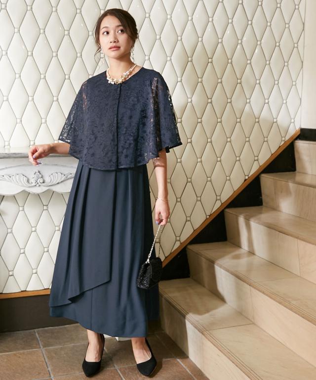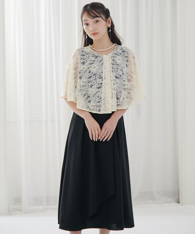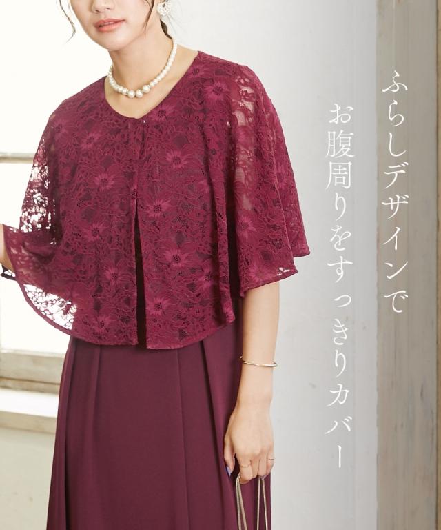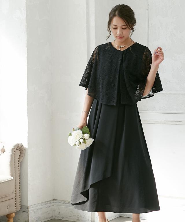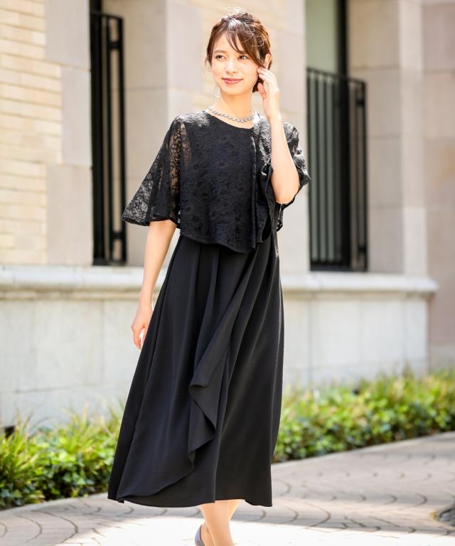 ドレス ワンピース 大きいサイズ レディース 結婚式 パーティー 前開き レース ケープ風 有 4L/5L/6L