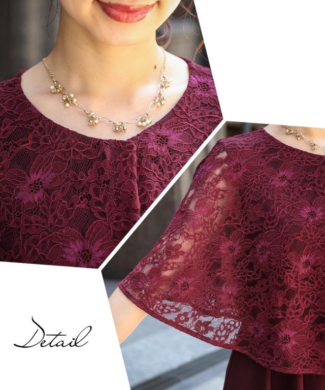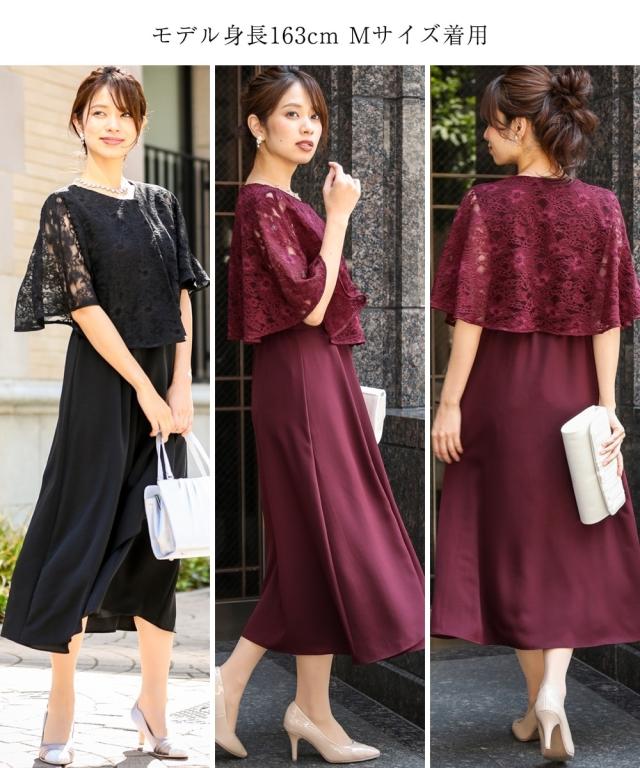 ドレス ワンピース 大きいサイズ レディース 結婚式 パーティー 前開き レース ケープ風 有 ネイビー/ボルドー/黒 8L ニッセン nissen