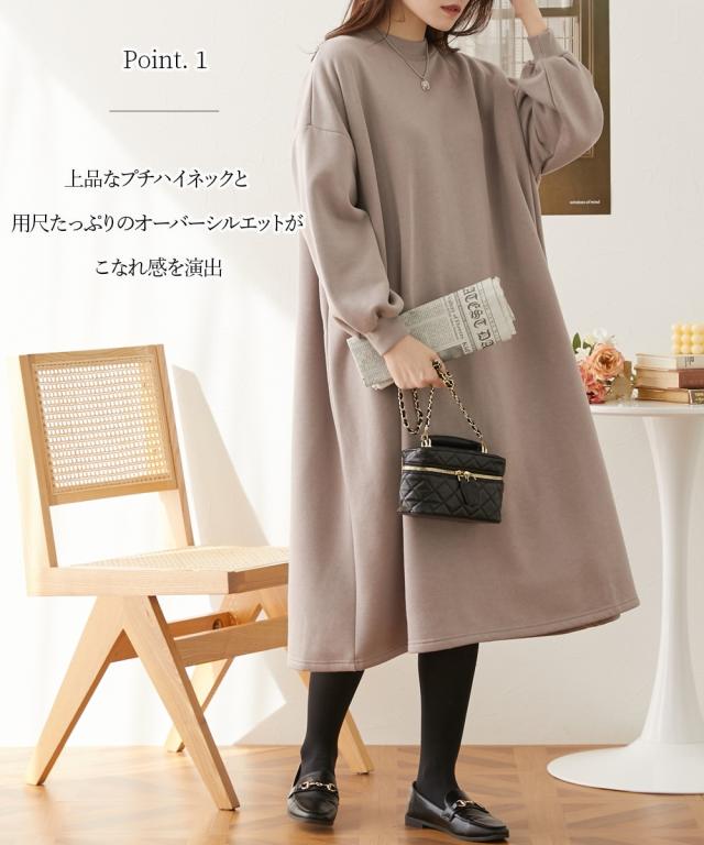 ”絶妙バランス”でオシャレ見えするカットソーワンピース ■デザイン ・上品なプチハイネックと用尺たっぷりのオーバーシルエットがこなれ感を演出してくれます。 ・お出かけにもルームウェアとしてもおすすめのアイテムとなっています。 ・オーバーシルエットなので身体のラインも拾わず楽に日常使いしやすいワンピースです。 ■素材 冬でも暖かい、ふんわりとした着心地の裏起毛素材 ■おすすめのスタイリング お出かけにもルームウェアとしてもおすすめのアイテムとなっています。 【Bepraised】ーーー明日ちょっと褒められる服ーーー 大人トレンドを意識したこだわりのアイテムと着こなしでアナタの毎日に輝きを。 ただシンプルできれいなだけじゃ物足りない。 カジュアルすぎず、スタイリッシュで大人の品性を感じる着こなしに。 そんな、こなれたオシャレを楽しむ女性に寄り添う、新鮮なリアルクローズをご提案します。