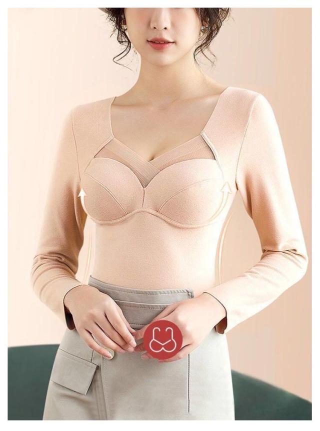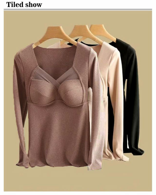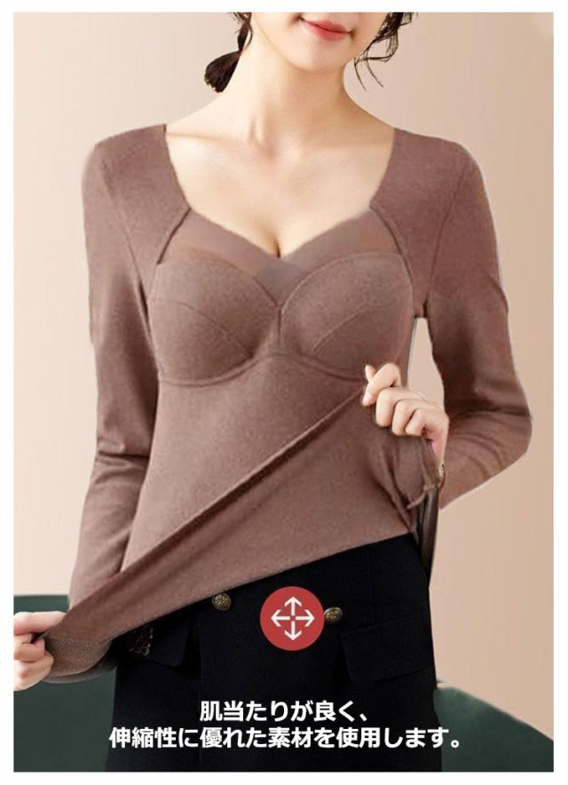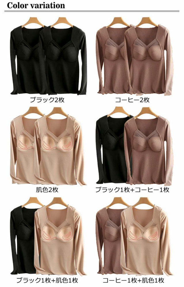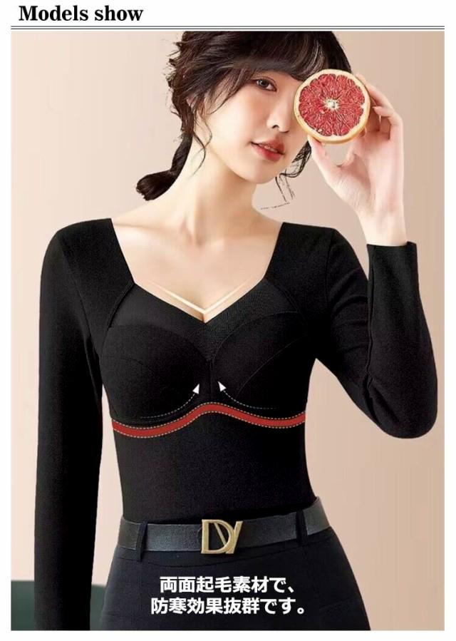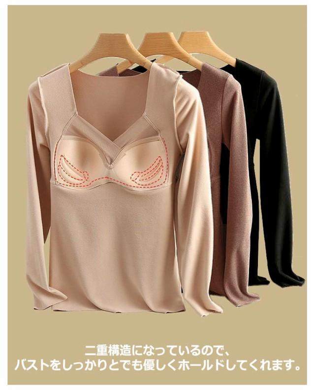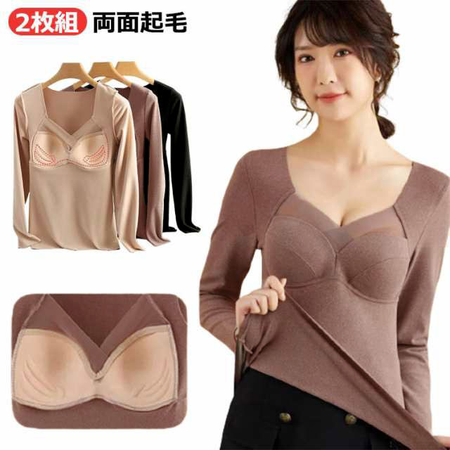 インナー 暖かい 両面起毛 長袖 カップ付き インナー 長袖 2枚組 カットソー 2枚組 インナー インナー カップ付インナー レディース ブラトップス ブラトップ シームレス 長袖 秋冬 定番 vネック ブラトップ レディース カップ付 インナー vネック 秋冬 暖かい