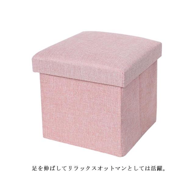 | 収納したあとは、ふた付きなので、イス・スツールとしても活躍。 隠したいもの、あまり使わないもの、すっきりしまえて、しかも座れる。 足を伸ばしてリラックスオットマンとしては活躍。 リビング・寝室・玄関など場所を選ばず、省スペースを実現するコンパクト設計です。 | |