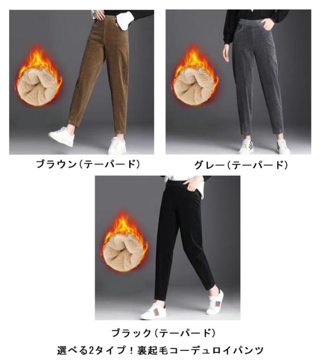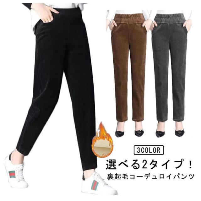 極暖 レディース テーパードパンツ ボトムス コーデュロイパンツ 2タイプ コーデュロイパンツ 防寒 裏起毛 ストレートパンツ 裏フリース ぬくぬく あったかパンツ 大きいサイズ ロングパンツ ウエストゴム 長ズボン 大人 カジュアル 秋冬