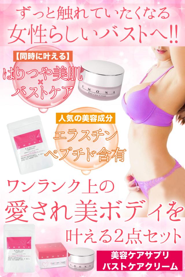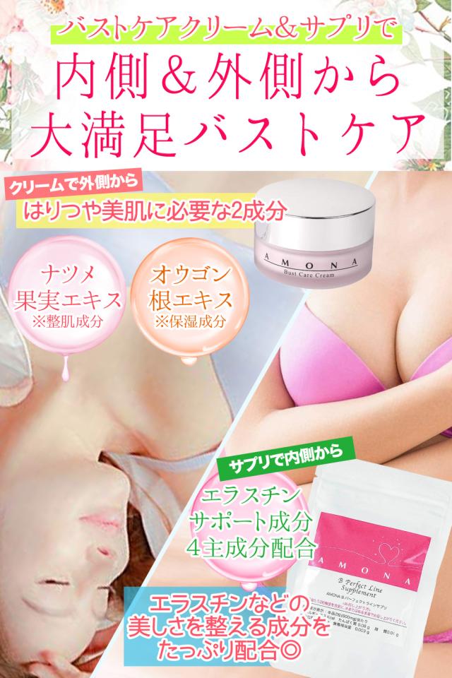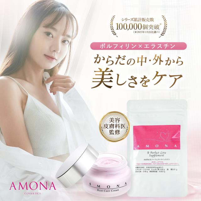 AMONA バストアップ セット クリーム サプリメント [ボルフィリン10%配合] ボディケア 濃縮プラセンタ ヒアルロン酸 胸 お尻 エイジングケア 保湿 無添加 日本製