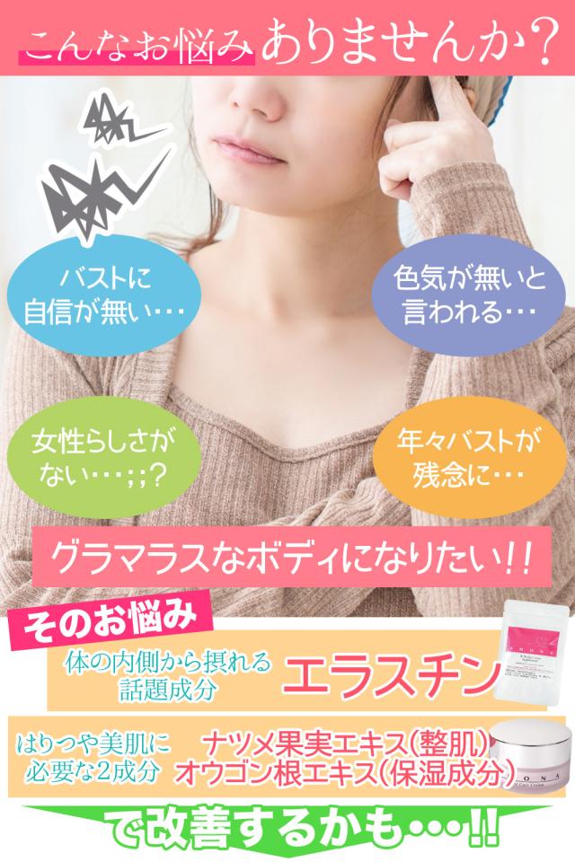 女性ホルモンの分泌を助けクリームを塗ることによってバストにハリを与えます。