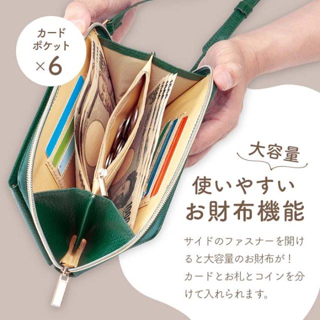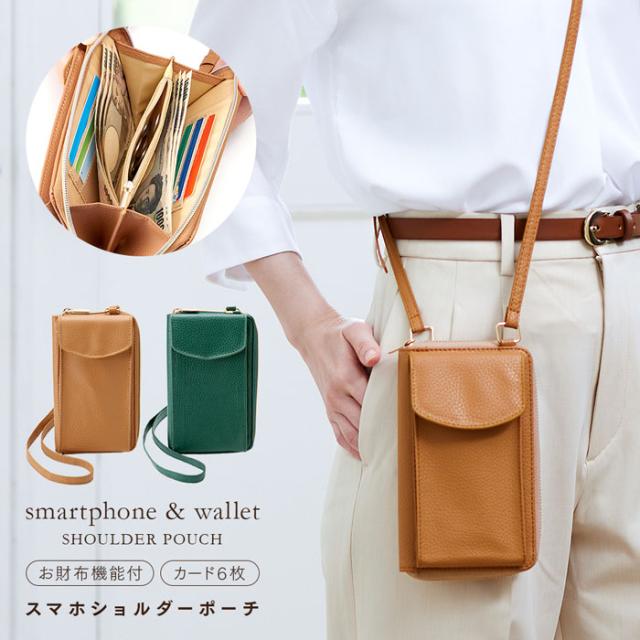 スマホショルダーポーチ スマホ 財布 兼用 ショルダーバッグ 斜め掛け 手ぶら 買物 1009979