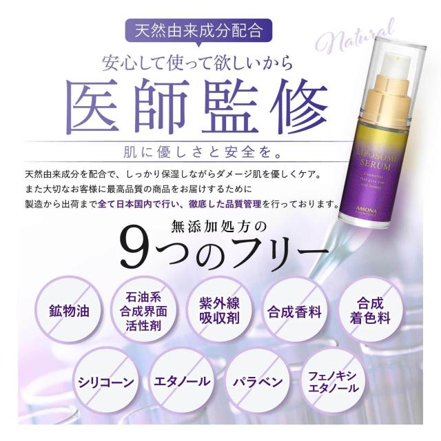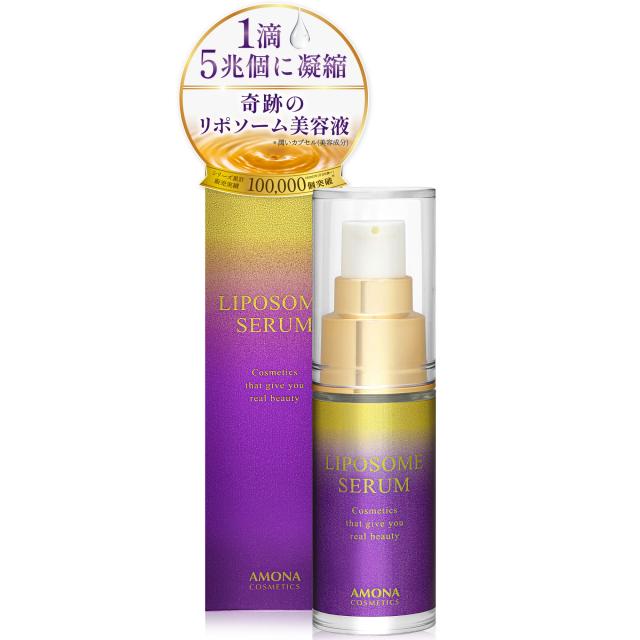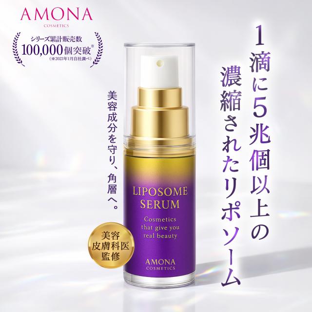 「ほうれい線が気になる‥」「くすみ、肌のハリ、乾燥肌をなんとかしたい‥」そんなあなたのために、研究開発を重ねて作り上げたエイジンクケアのためのAMONA リポソーム 美容液です。