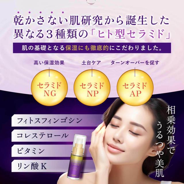 驚異的な1滴に5兆個のリポソームが高濃度に凝縮された贅沢な美容液です。極上のAMONAのスペシャルセラムで輝きを最大限に引き出します。