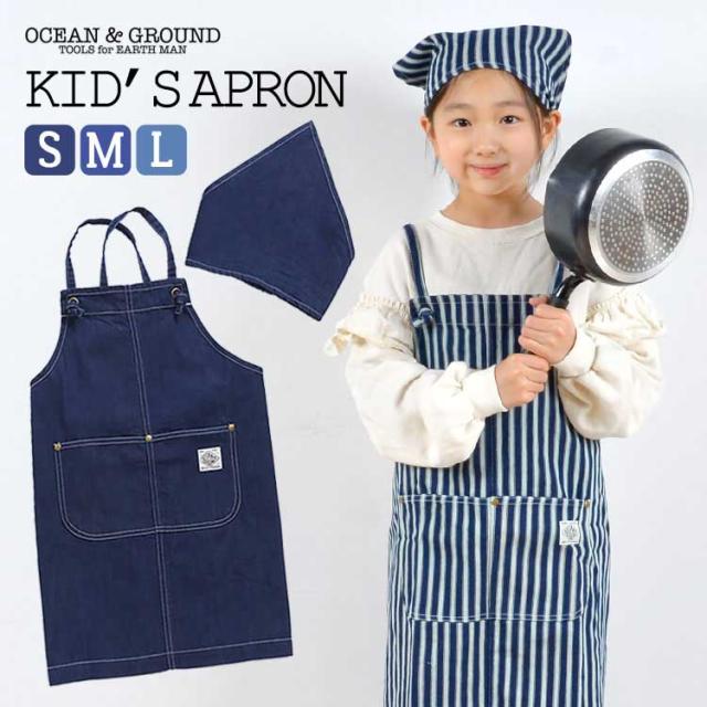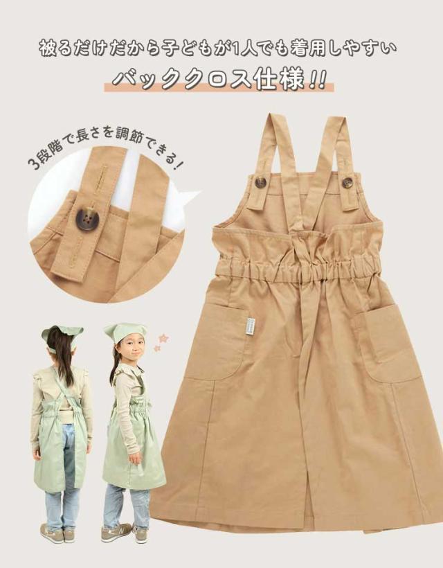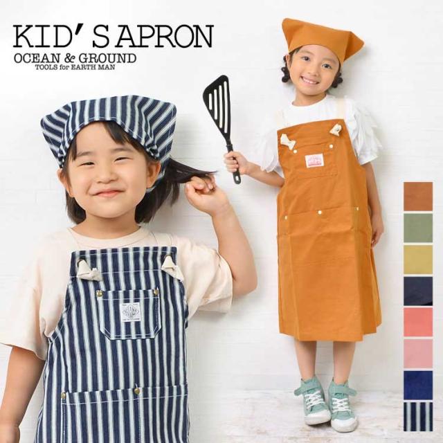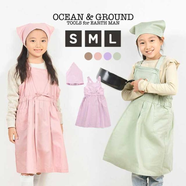 キッズ エプロン おしゃれ 女の子 子供 プリンセス 三角巾 セット フリル かわいい 子供用 OCEAN&GROUND オーシャンアンドグラウンド 1228001 入園 入学 バッククロス 100 110 120 130 140 150 160 ジュニア ラベンダー ピンク ミント ベージュ 小学生 中学生 調理実習