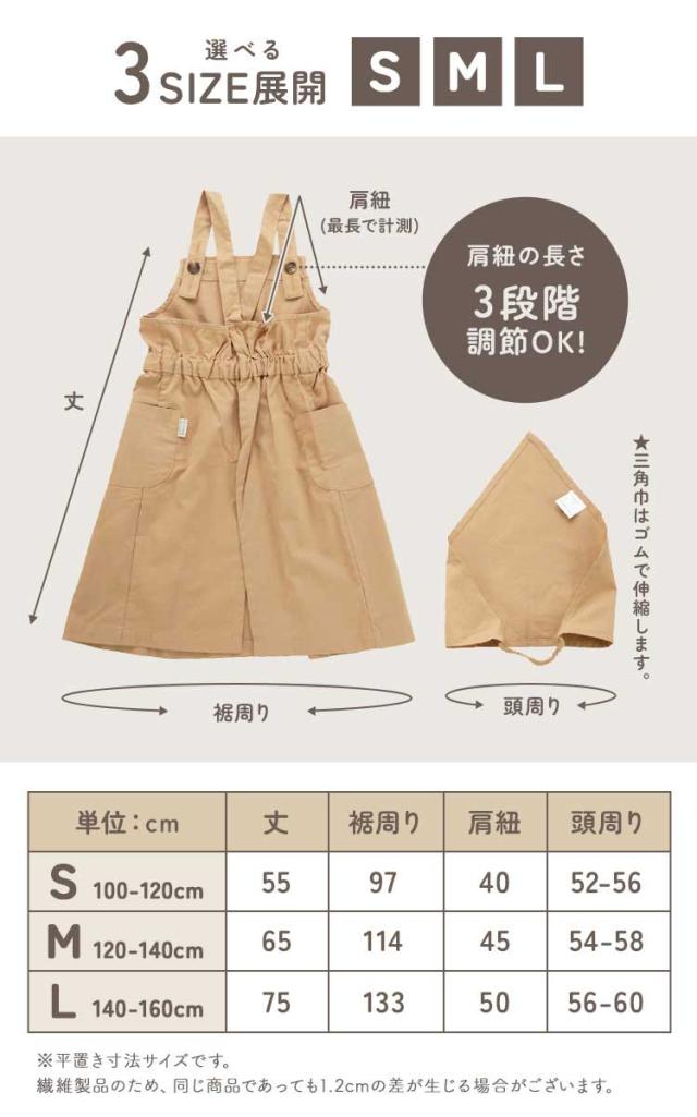 S(100-120cm) :丈55/裾周り97/肩紐40cm
