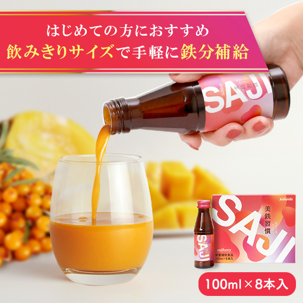 SAJI美鉄習慣 サジー&マンゴー ジュース 100ml×8本入 鉄分補給 鉄分 飲みやすい 健康 飲料 サジージュース 美味しい ドリンク 常春堂