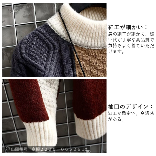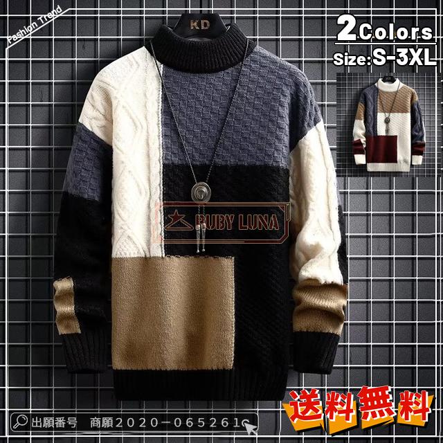 最安挑戦 冬新作 送料無料 新作 トップス メンズ ニットセーター プルオーバー 秋冬 長袖 モックネック 編み込み ニット クルーネック 厚手 防寒 暖かい 通勤 通学 スプライシング ニットパーカー おしゃれ