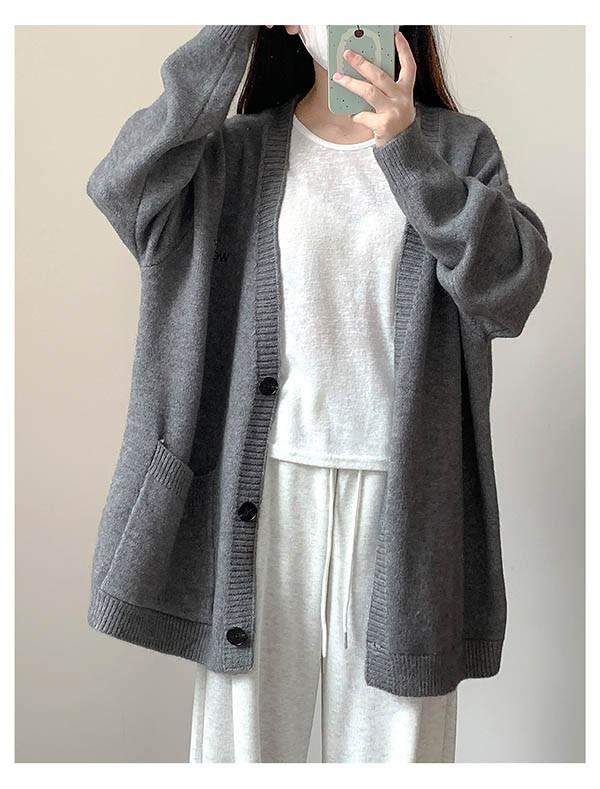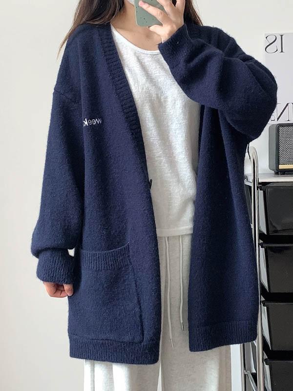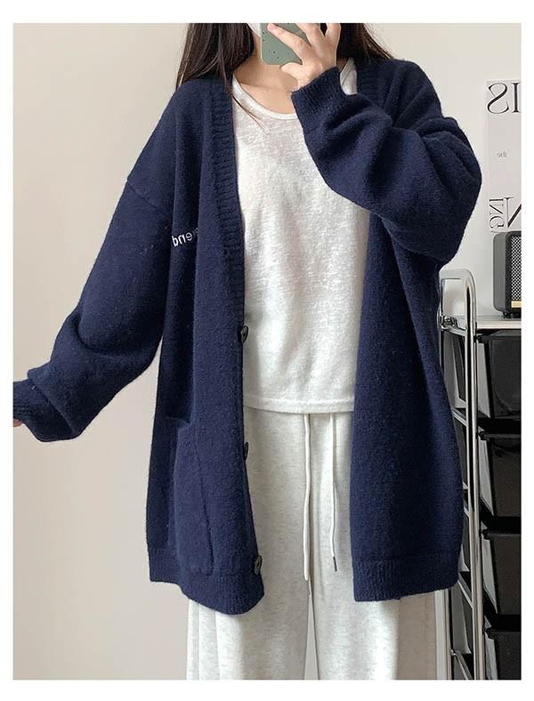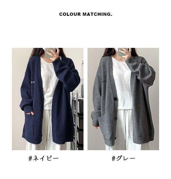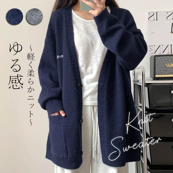 ドロップショルダー カーディガン 大きめ ニット 前ボタン 膝上丈 レディース 学生 おしゃれ 秋冬 春アウター ゆったり ざっくりニット 大きいポケット eh093x1x1l9