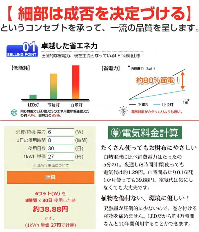 | 特徴 | 省エネルギー、防雨、高輝度、長寿命 |