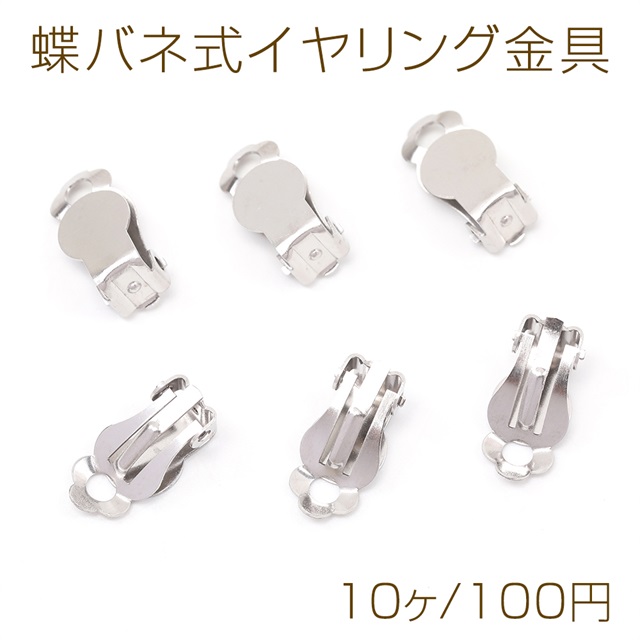 蝶バネ式イヤリング金具 ステンレス製 蝶バネイヤリングパーツ ピアス金具 シルバーカラー 平皿 8mm(10ヶ)