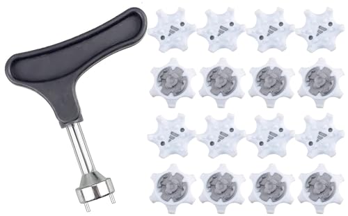 用ゴルフシューズ 16個セット ゴルフ用釘レンチ付属 スパイク鋲 用スパイク鋲 ゴルフシューズ靴鋲 滑り止め 簡単脱着 ホワイト