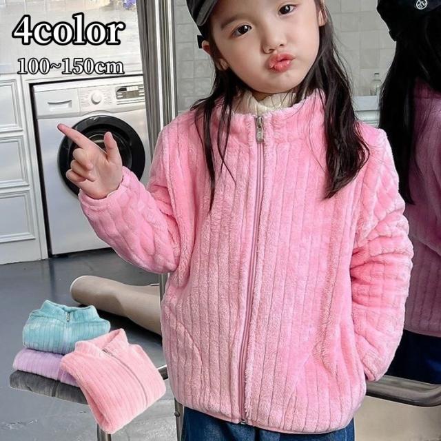 ジャケット ボアフリース 長袖 子供服 アウター キッズ 女の子 男の子 防寒 暖かい 秋冬 ふわふわ もこもこ 無地 ポケット