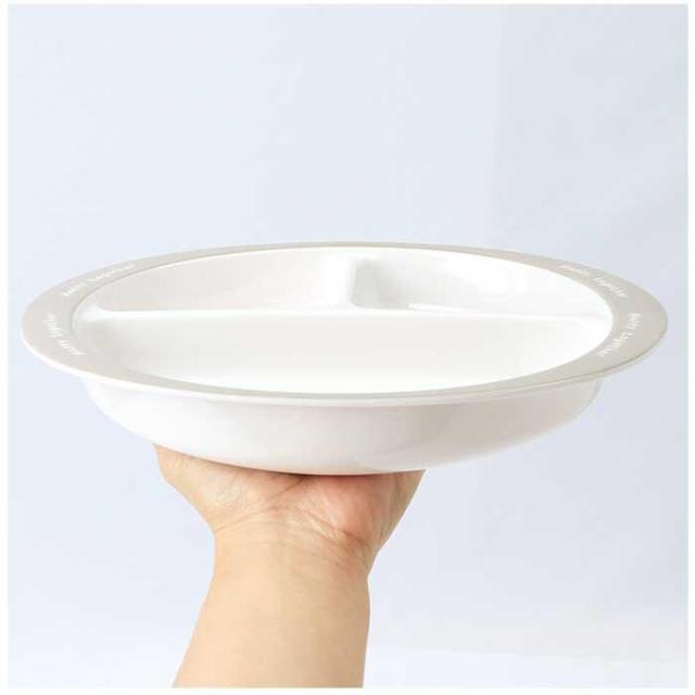 ・3つのスペースに仕切られた容量750mlのプレート。ごはんとおかずが混ざることなく、1皿に盛り付けOK。カレーや汁気のあるおかずにも使いやすい深めのつくり。